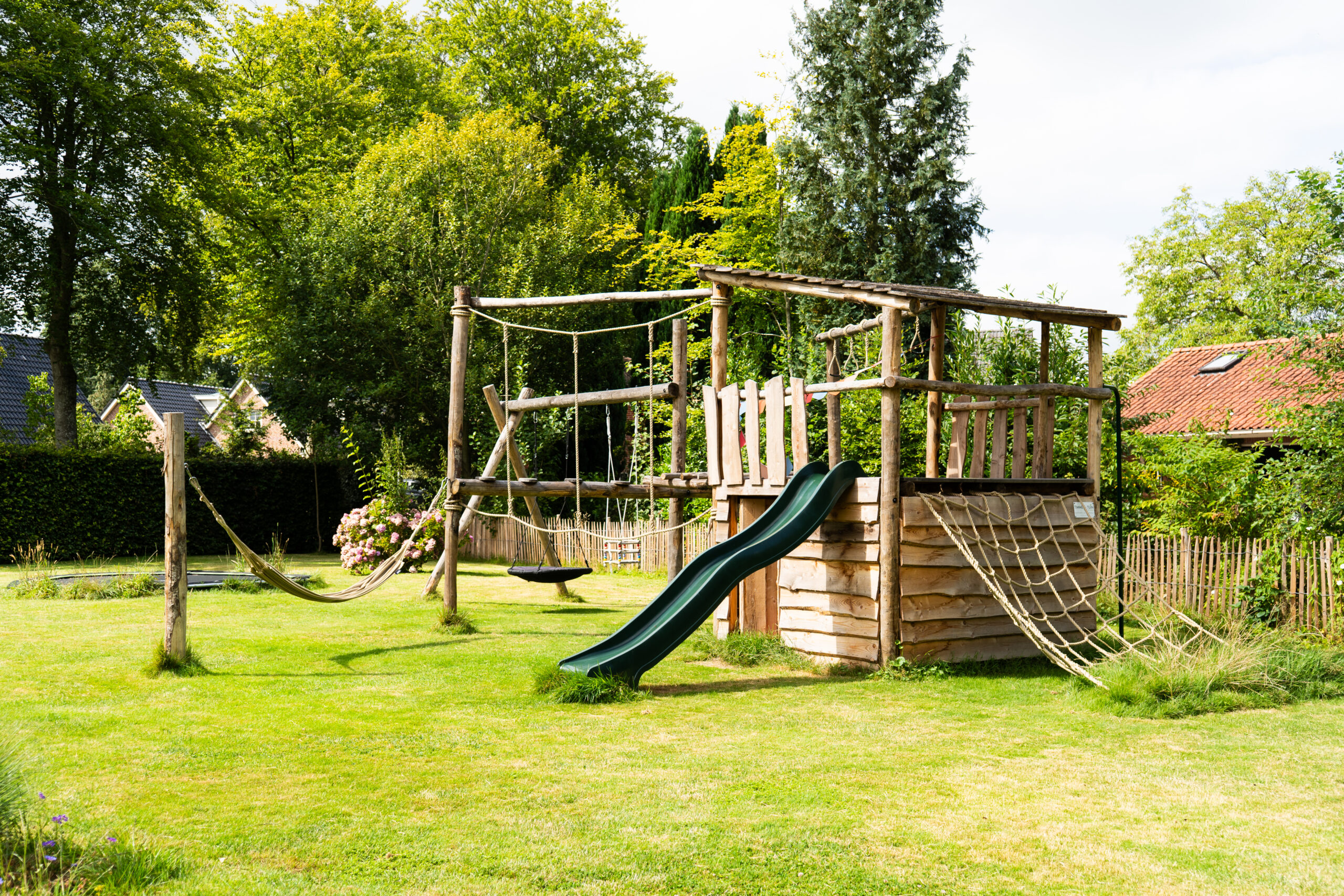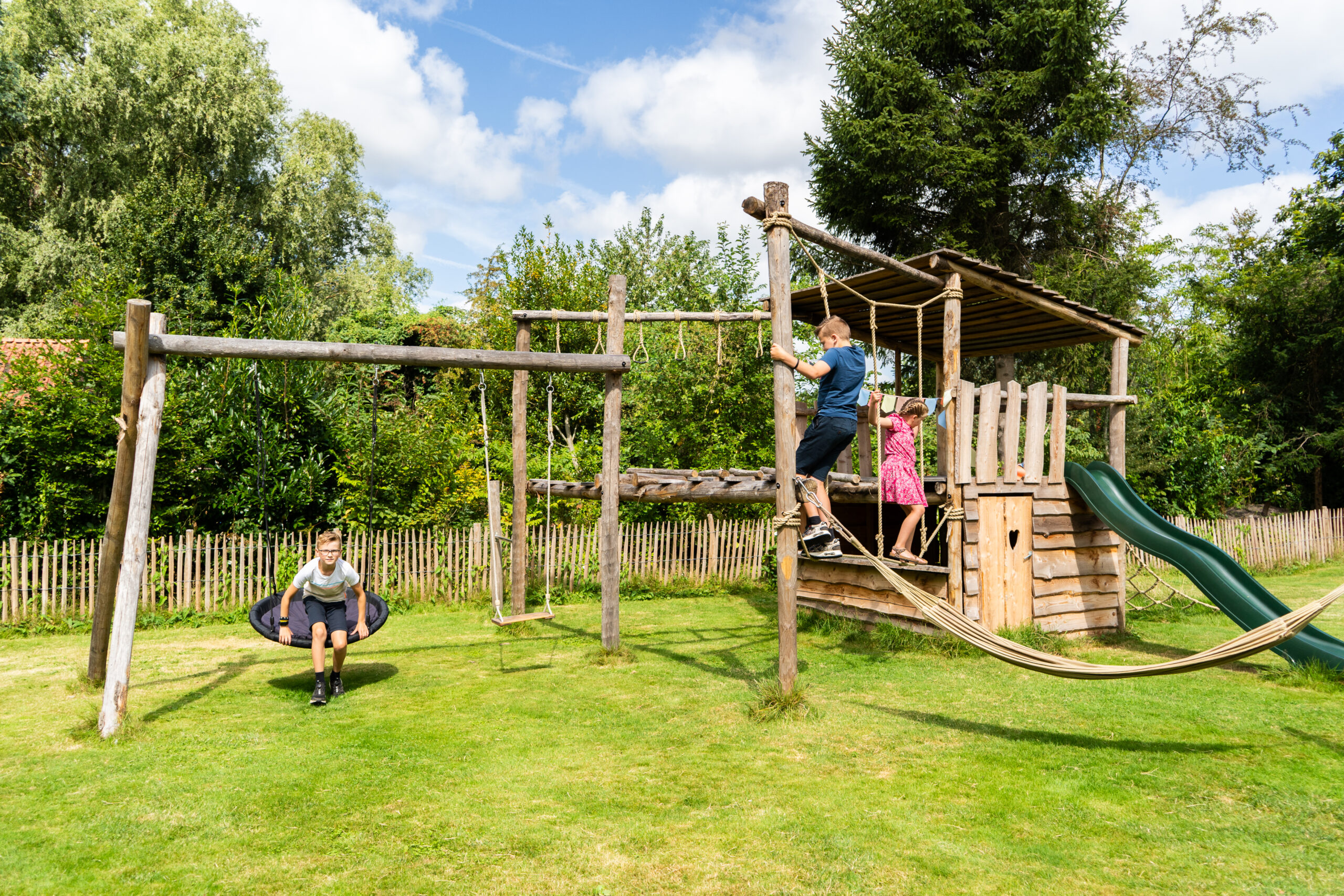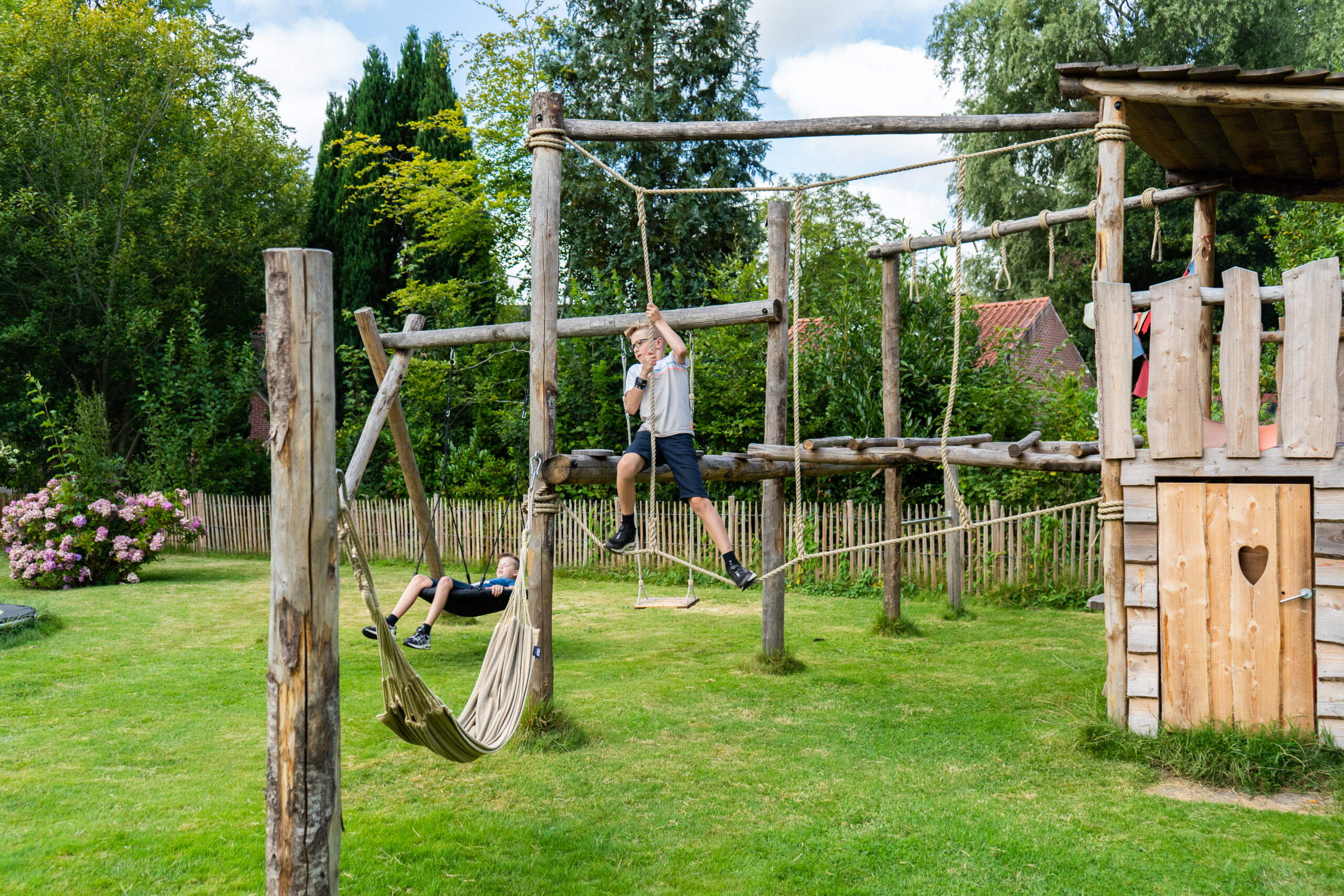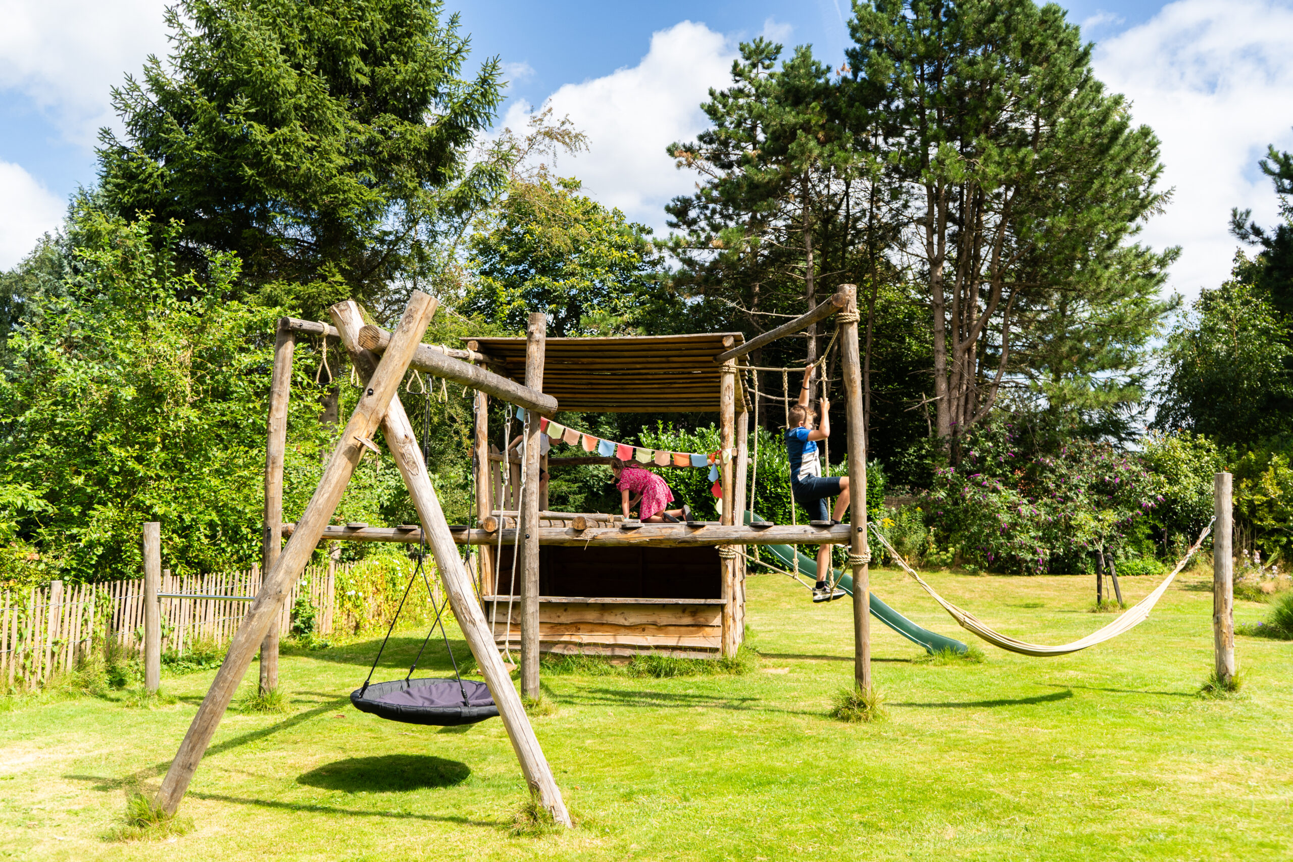 Boomhutten en speeltoestellen