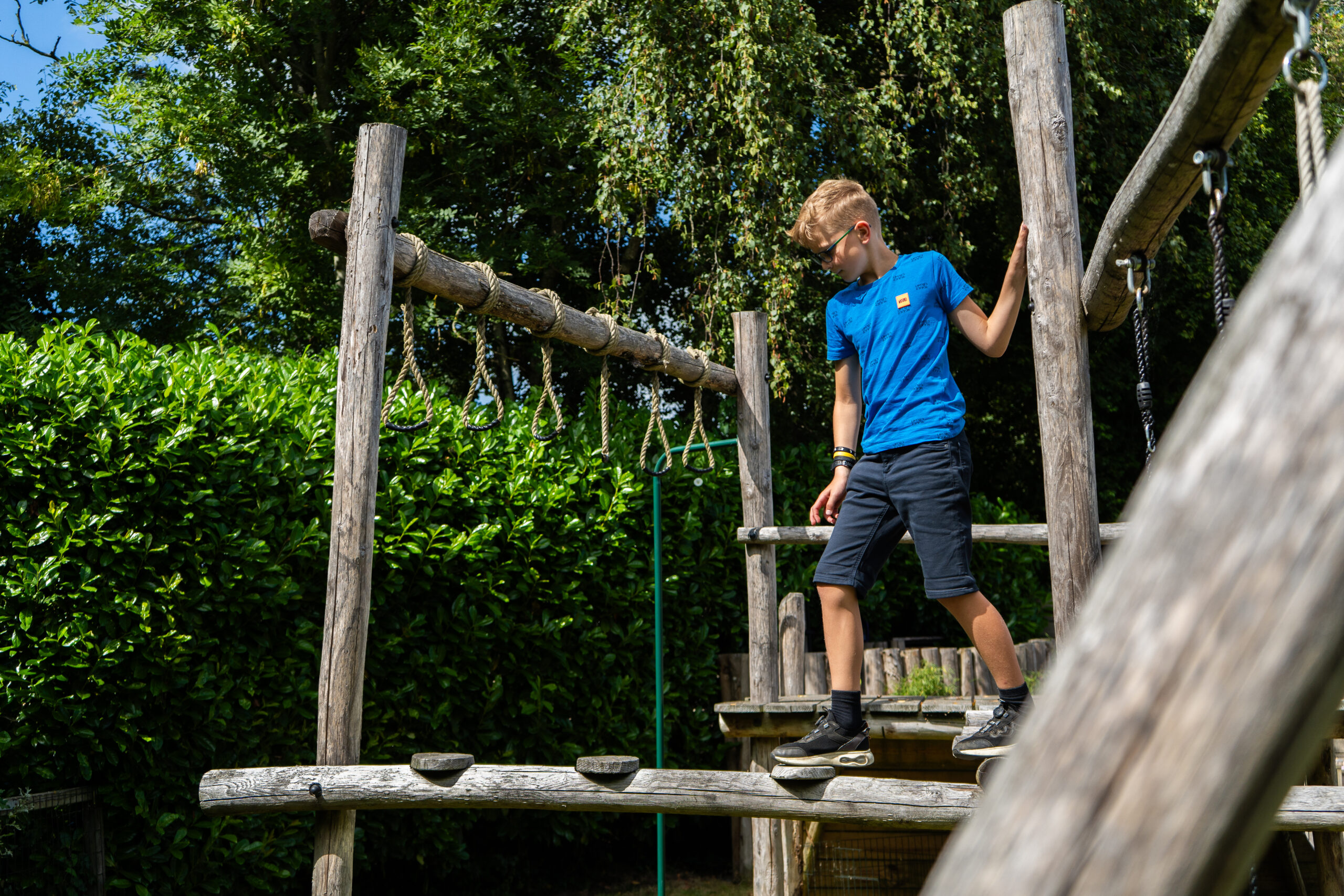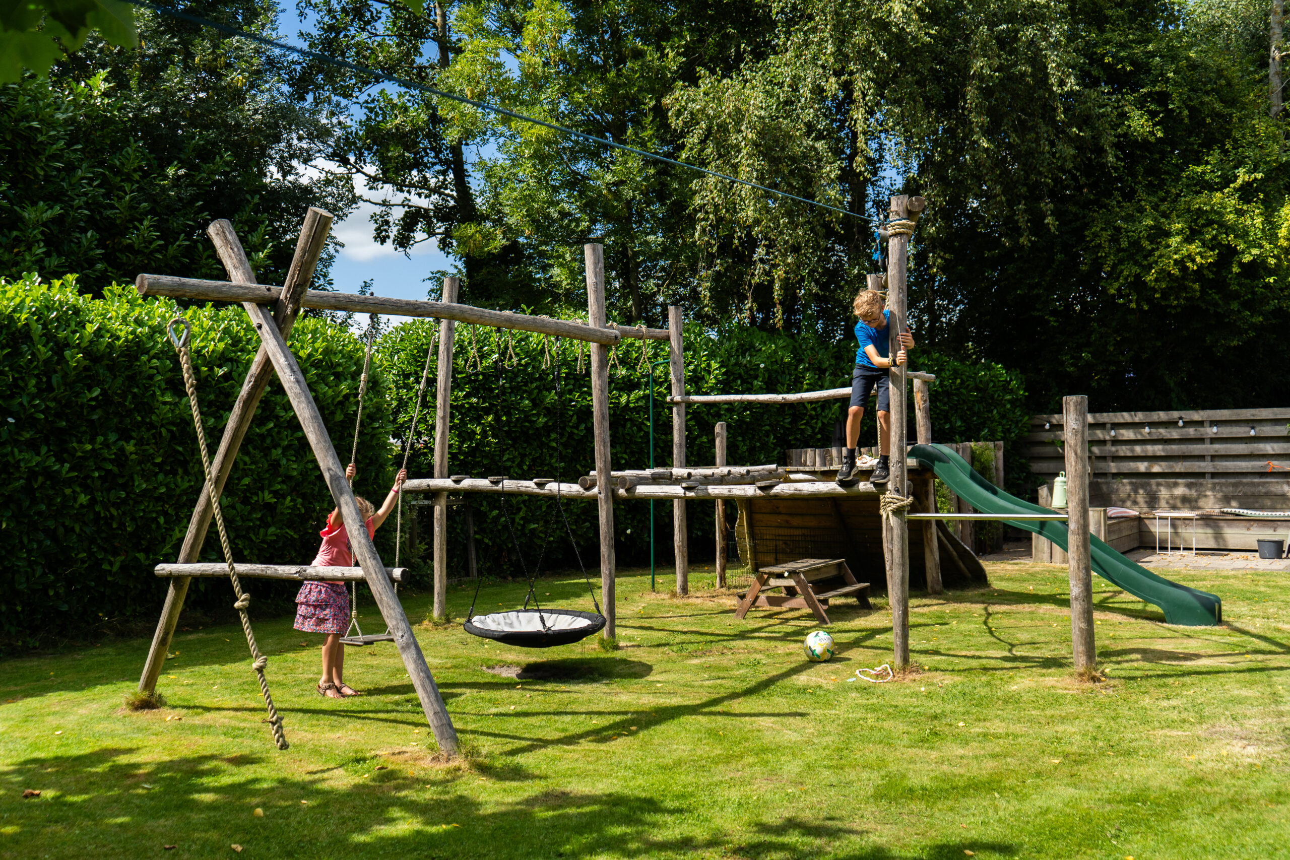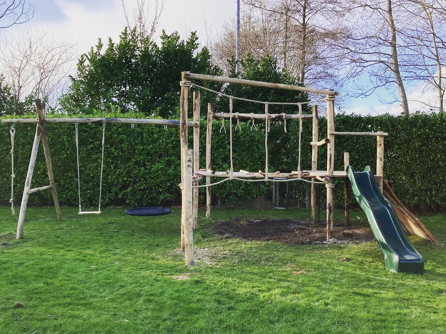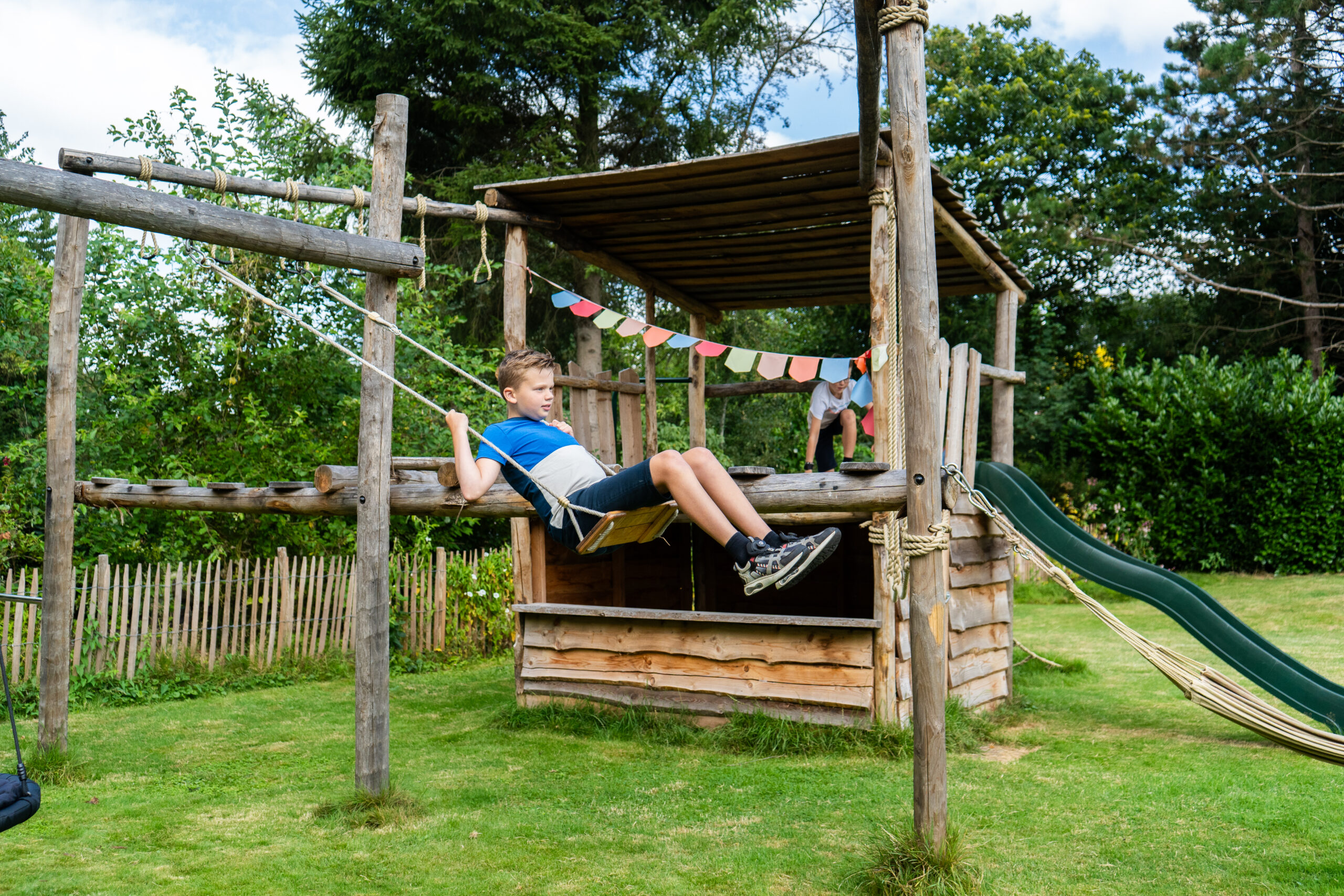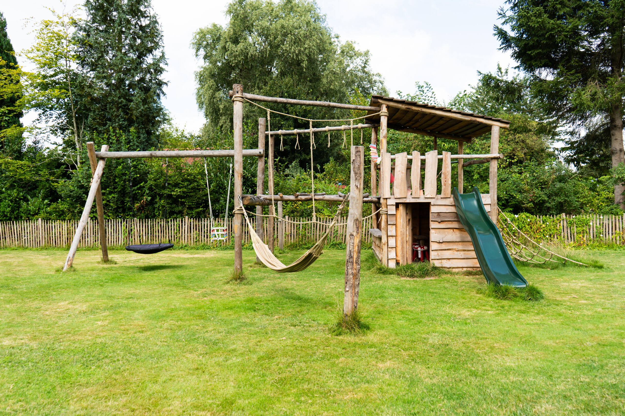Boomhutten en speeltoestellen